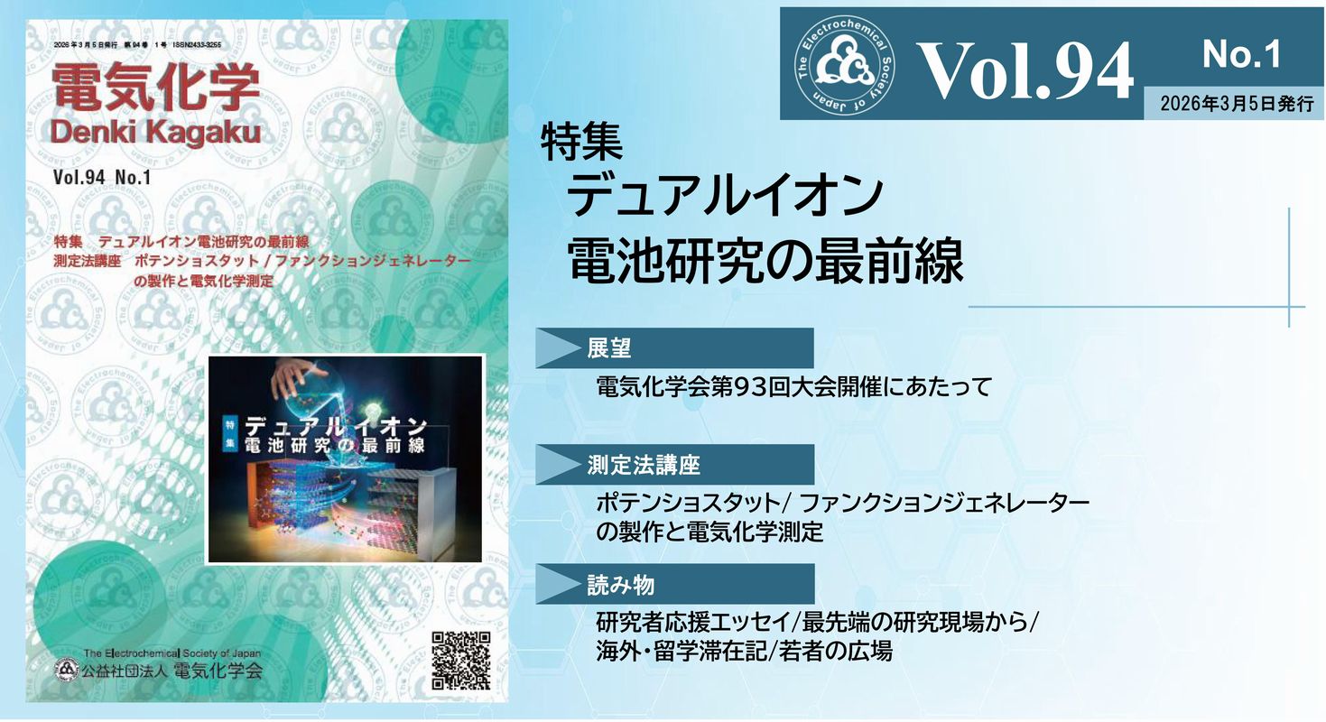 | 2025.11.12 | お知らせ | 2025年9・10月 Electrochemistry誌ダウンロード数上位論文のお知らせ |